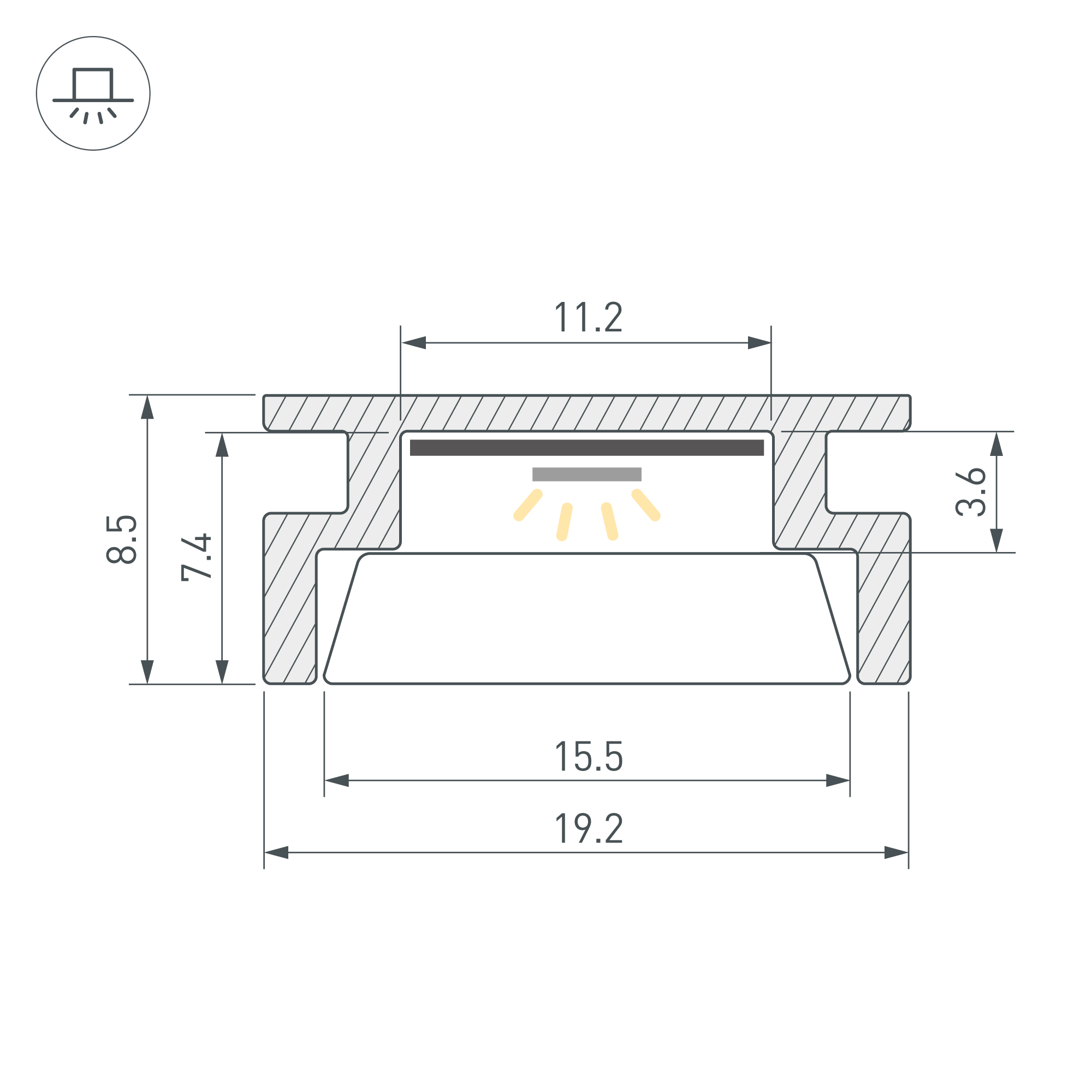Алюминиевый анодированный профиль, встраиваемый в пол. Высокопрочный алюминий. Герметизация до IP67. Для использования внутри помещений. Габаритные размеры (L×W×H): 2000x19,2x8,5 мм. Ширина площадки для ленты 11,2 мм. Экран (из сверхпрочного поликарбоната, УФ-устойчивый), заглушки и другие аксессуары приобретаются отдельно. Цена за 1 метр. Предоставляется видео-инструкция по установке.
