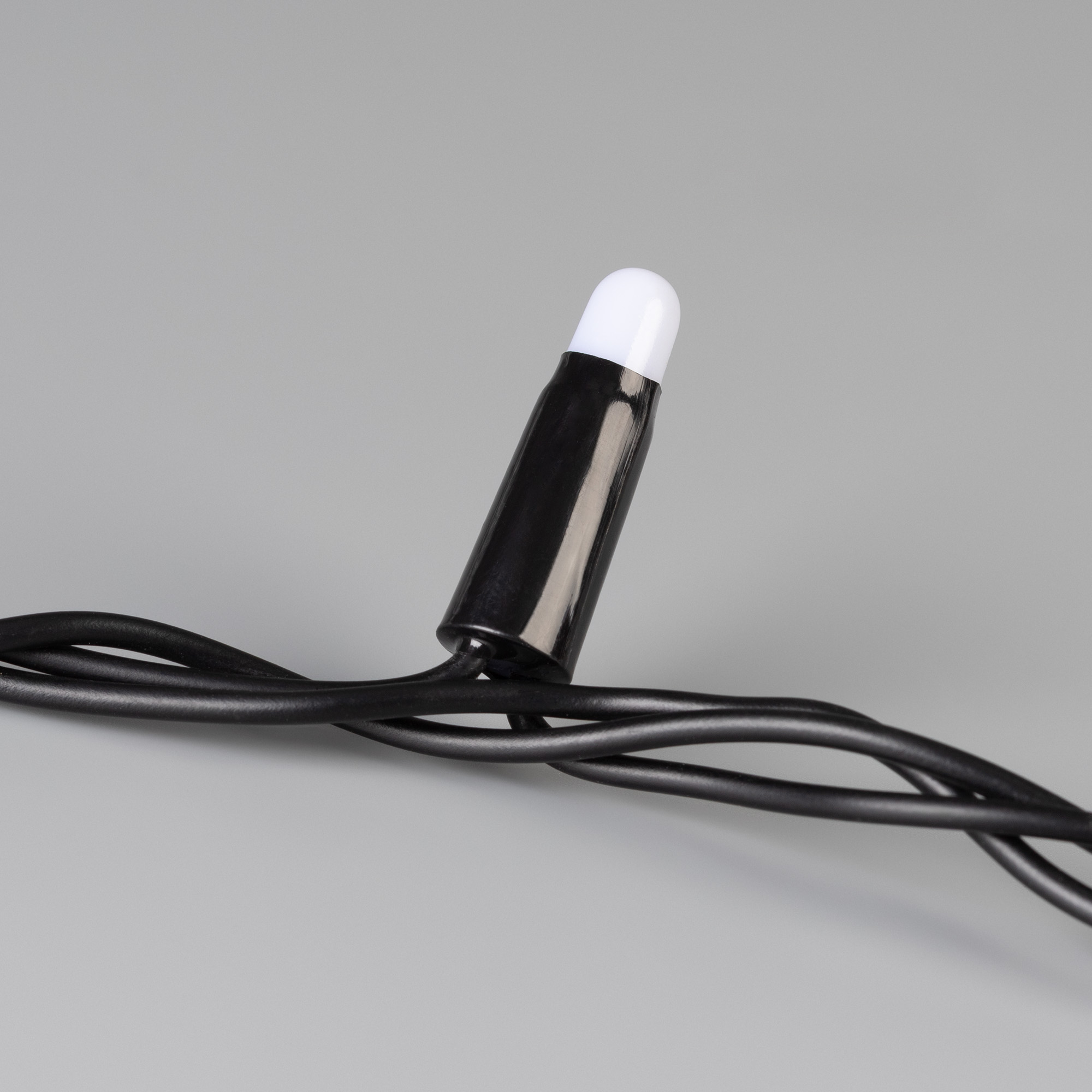 Светодиодная нить Classic. Размер 10000 мм. Цвет свечения БЕЛЫЙ (6000 К). 100 светодиодов размером 7 мм с эффектом медленного мерцания каждого светодиода с мягким световым рисунком (выпуклая молочно-белая линза). Провод черный, ПВХ. Питание 230 В, Мощность 7 Вт, защита IP65, применение в помещении и на улице под навесом. Аксессуары для подключения и управления приобретаются отдельно.