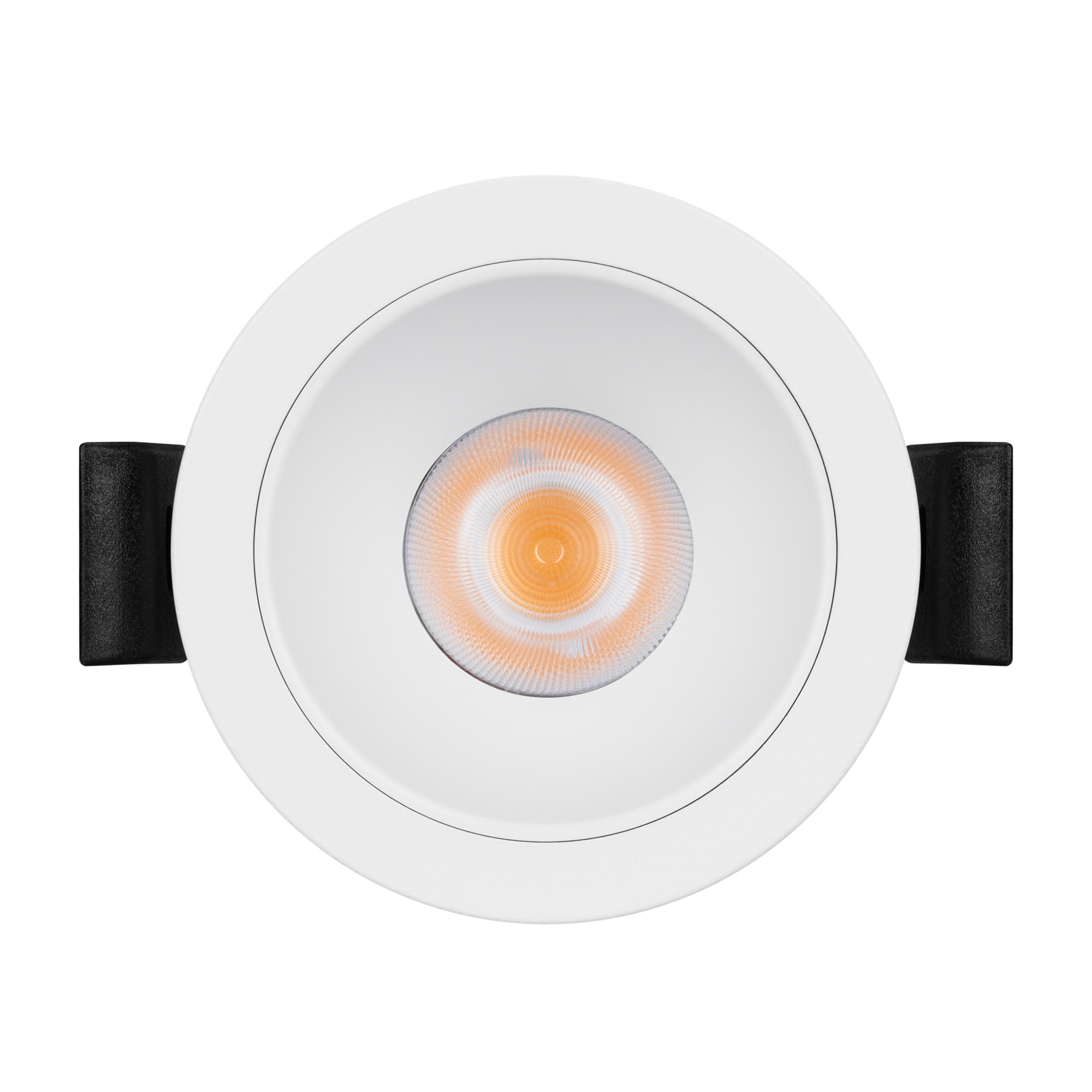Встраиваемый светильник даунлайт. Мощность 10 Вт, св. поток 853 лм, 78 лм/Вт, теплый 3000 K, CRI>90, UGR<16, угол 35°, напряжение питания 230 В. Белый круглый корпус из алюминия, белый МАТОВЫЙ отражатель из PMMA, степень защиты IP20. Размер: диаметр 58 мм, высота 68 мм. Монтаж встраиваемый, установочное отверстие: диаметр 52 мм. Драйвер 20-40 В, 250 мА, пульсация <2%.