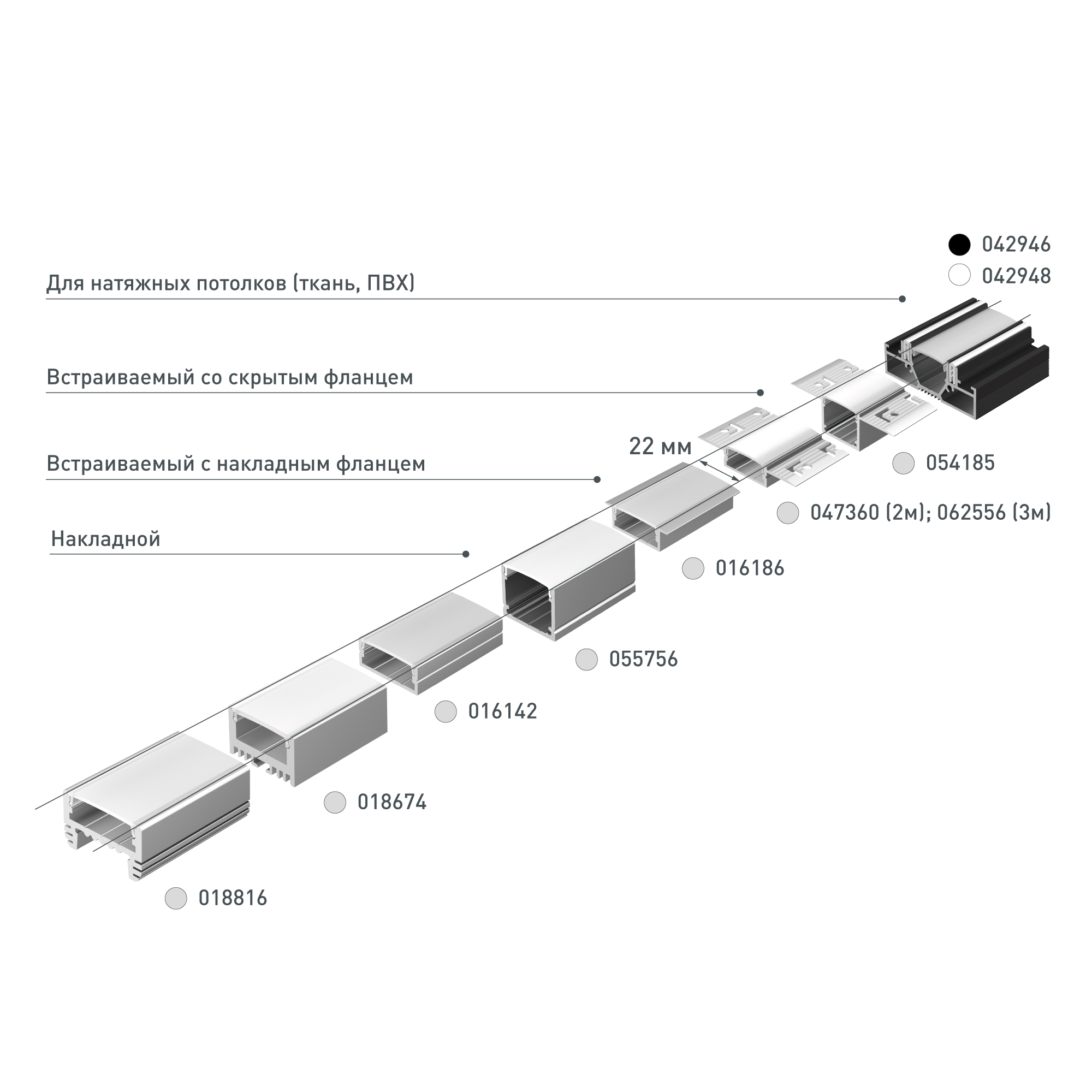 Экран и другие аксессуары не включены в комплект и приобретаются отдельно. Цена указана за 1 метр профиля.