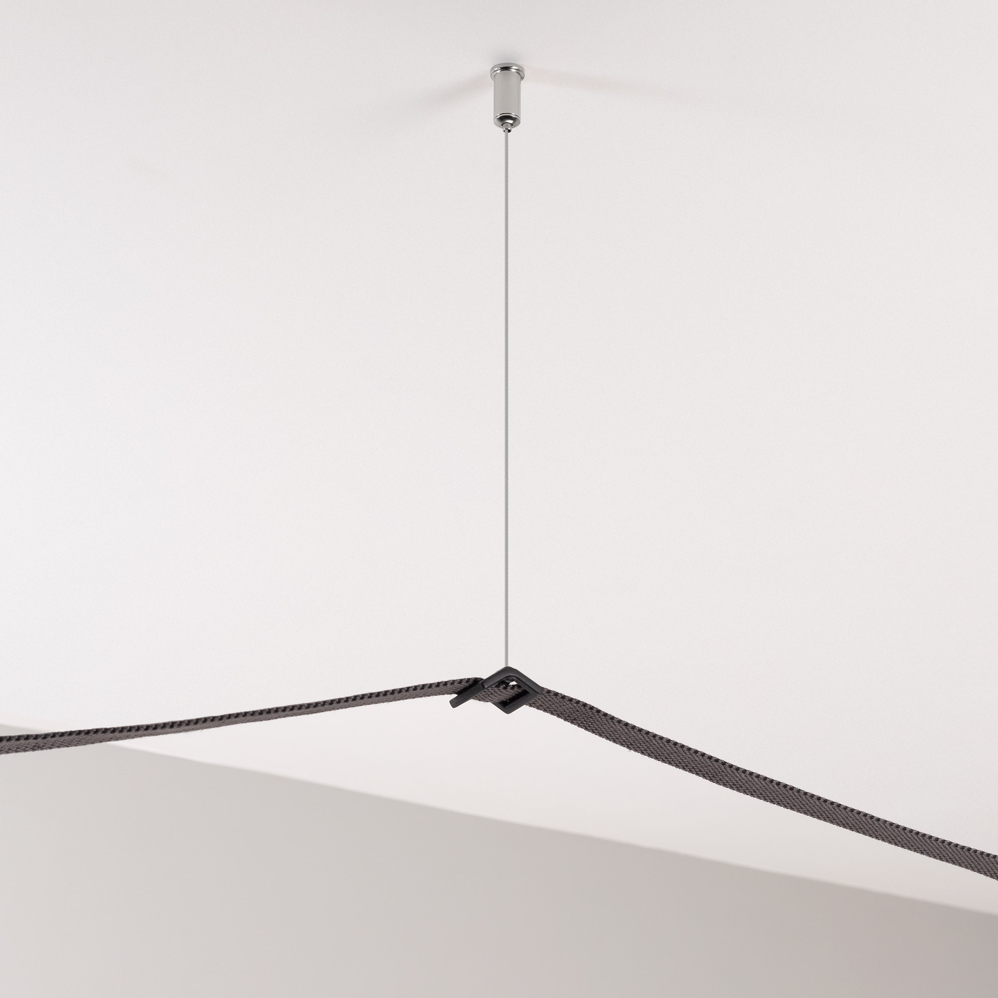 Подвес-фиксатор для токопроводящего ремня ART-INBELT-CON-HANG для v-образного крепления токопроводящего ремня серии ART-INBELT. Крепится к поверхности (потолку) при помощи стального троса ∅1.2х2000мм и монтажного крепежа (в комплекте), позволят точечно фиксировать гибкий трек-ремень, устранить провисание. Размер: 28x28x12 мм. Цвет: черный. Материал: пластик + алюминий.
