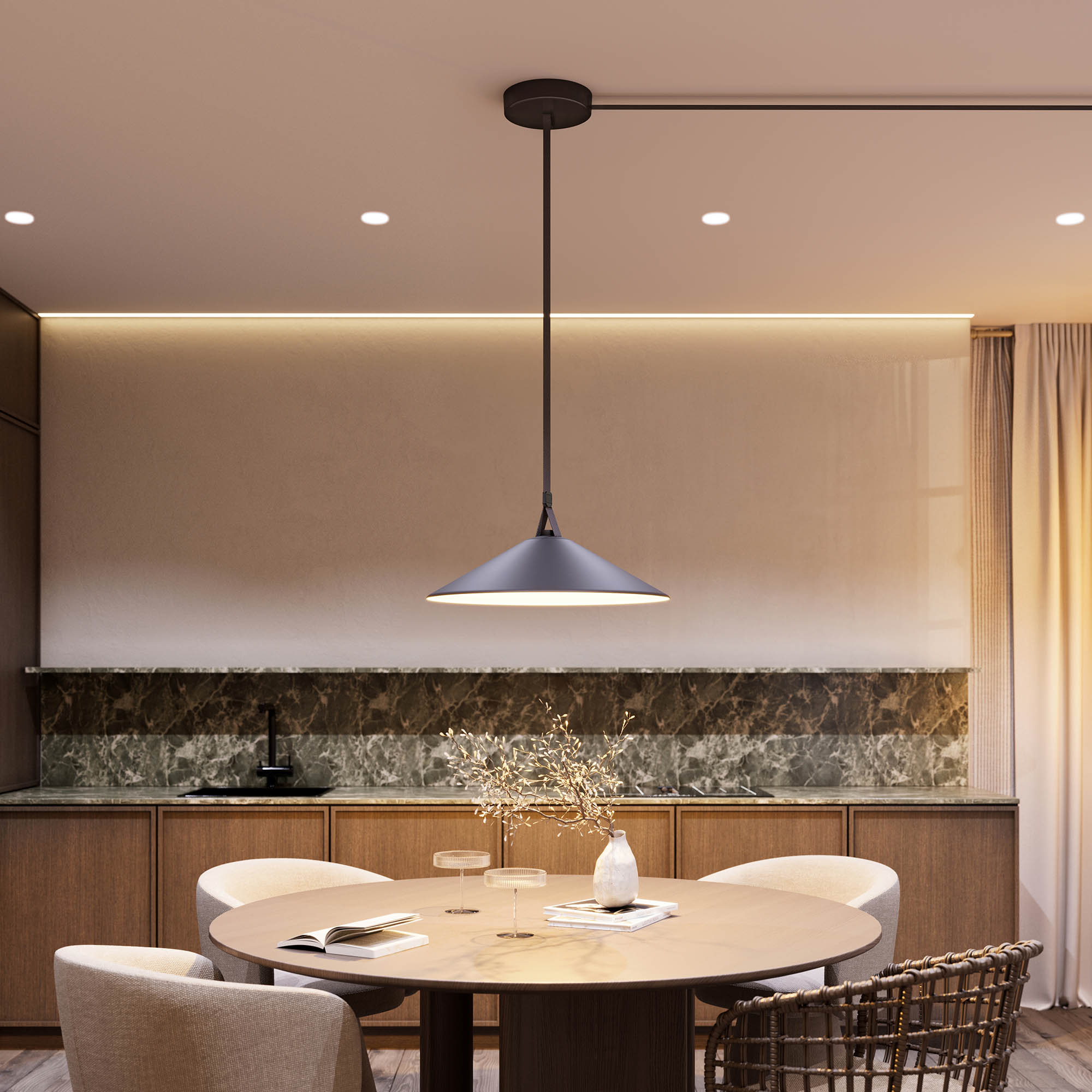 Накладной интерьерный светодиодный светильник ART-INBELT-WOK-R580-20W Day4000-MIX (BK, 110 deg, 48V, DALI) мощностью 20 Вт для системы серии INBELT. Изменяемая цветовая температура от 2700 до 6500 К. Высокий индекс цветопередачи CRI>92 и пульсация менее 5% гарантируют качественное освещение, комфортное для глаз, и обеспечивает точное восприятие цветов и отсутствие мерцания. Конусообразный корпус, размером 580*160 мм. Монтаж выполняется на гибкий трек-ремень. Разнообразие аксессуаров позволяет выбирать точки крепления системы на любой поверхности (пол/потолок/стена). Широкий угол излучения 110° позволяет создавать мягкое равномерное освещение. Управление разными сценариями, яркостью и цветовой температурой от теплого до холодного оттенка возможно с помощью протокола управления DALI. Низкое напряжение питания системы 48В безопасно в эксплуатации. Драйвер для подключения 48В поставляется отдельно.