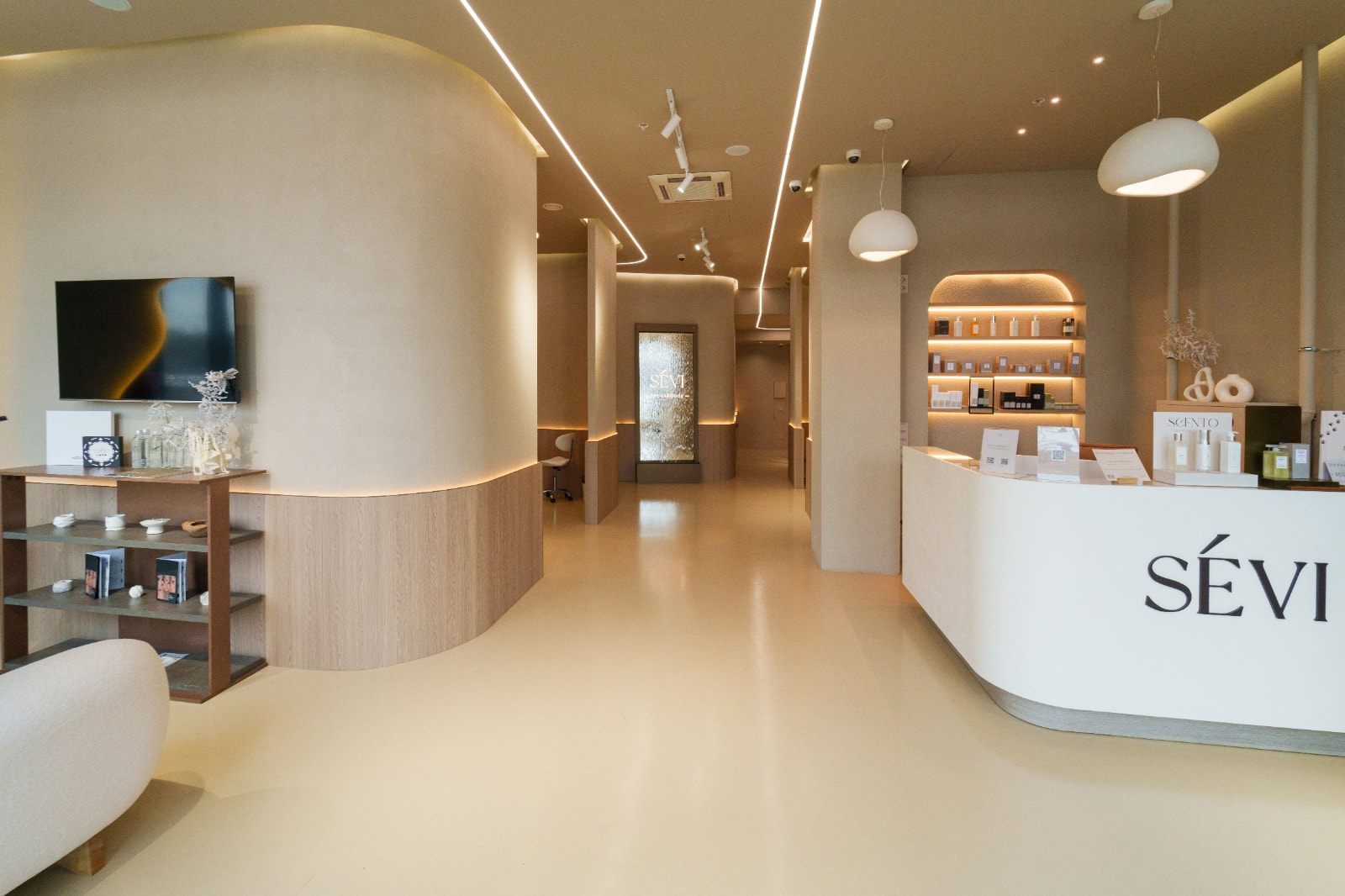 встроенных точечных светильников GLORY в зоне ресепшена, обеспечивающих комфорт для администратора;